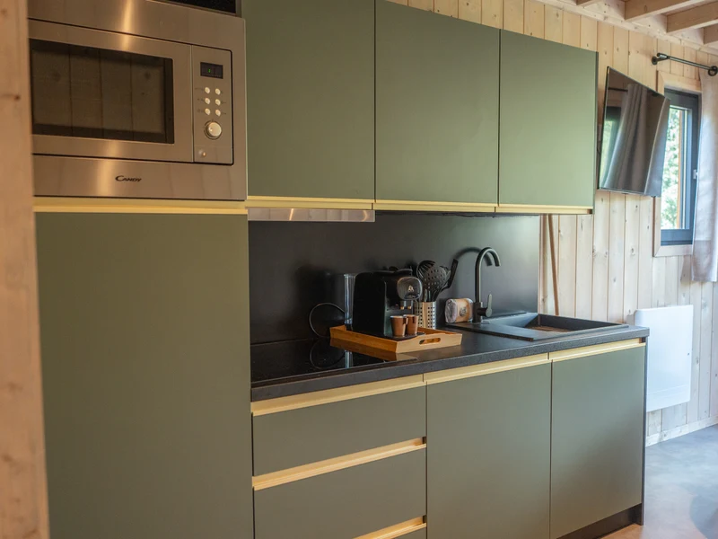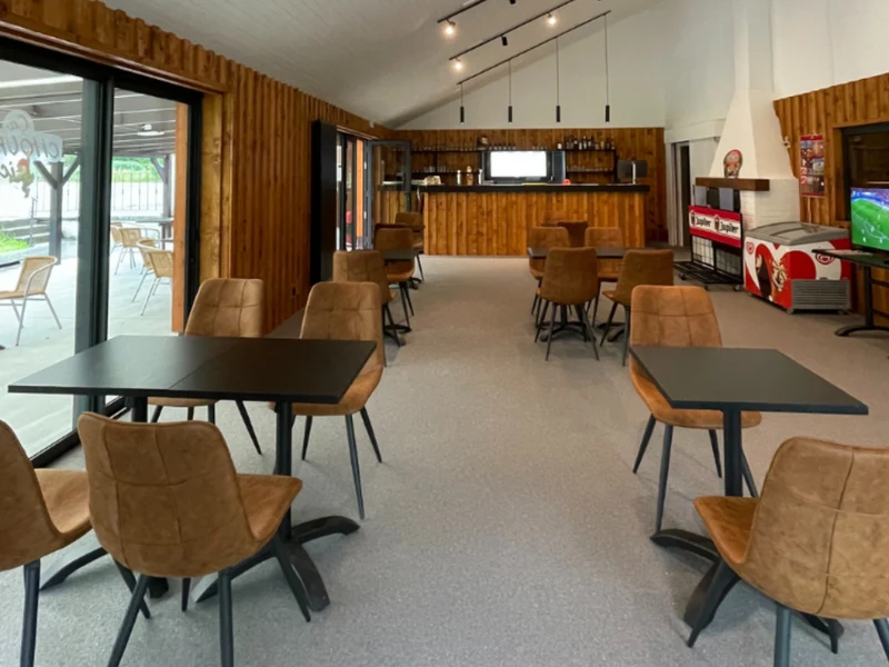 Der Gemeinschaftsraum im Hauptgebäude ist ansprechend eingerichtet, mit einem offenen Kamin, einer Küchenzeile und gemütlichen Sitzecken – ideal, wenn das Wetter umschlägt. Hier können Sie auch Gruppenaktivitäten buchen, wenn Sie mit mehreren Familien unterwegs sind. Einkaufsmöglichkeiten gibt es im Dorf Nadrin oder im nur wenige Kilometer entfernten Houffalize.