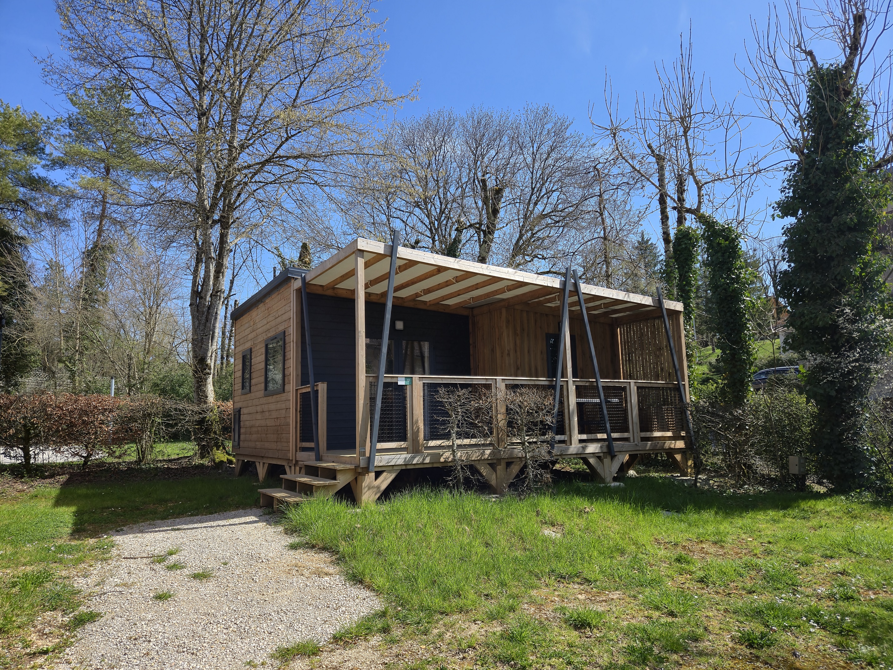 Ein Vorteil dieses Campingplatzes ist, dass er sich am Rande des Dorfes Patornay-Pont de-Poitte befindet. Sie gehen den Campingplatz hinunter, überqueren die Brücke über die Ain und stehen gleich an mehreren Geschäften. Sie können hier auch gleich Fischerlizenzen kaufen. Machen Sie das gleiche am Abend und sehen Sie, wie schön der Campingplatz von der Brücke aus beleuchtet wird. Nur 20 Autominuten entfernt befinden sich die berühmten Wasserfälle von Hérisson. Gute Wanderschuhe zum Besuch dieser Wasserfälle sind ein Muss, aber es lohnt sich. Das Wasser macht einen freien Fall von 65 Metern.