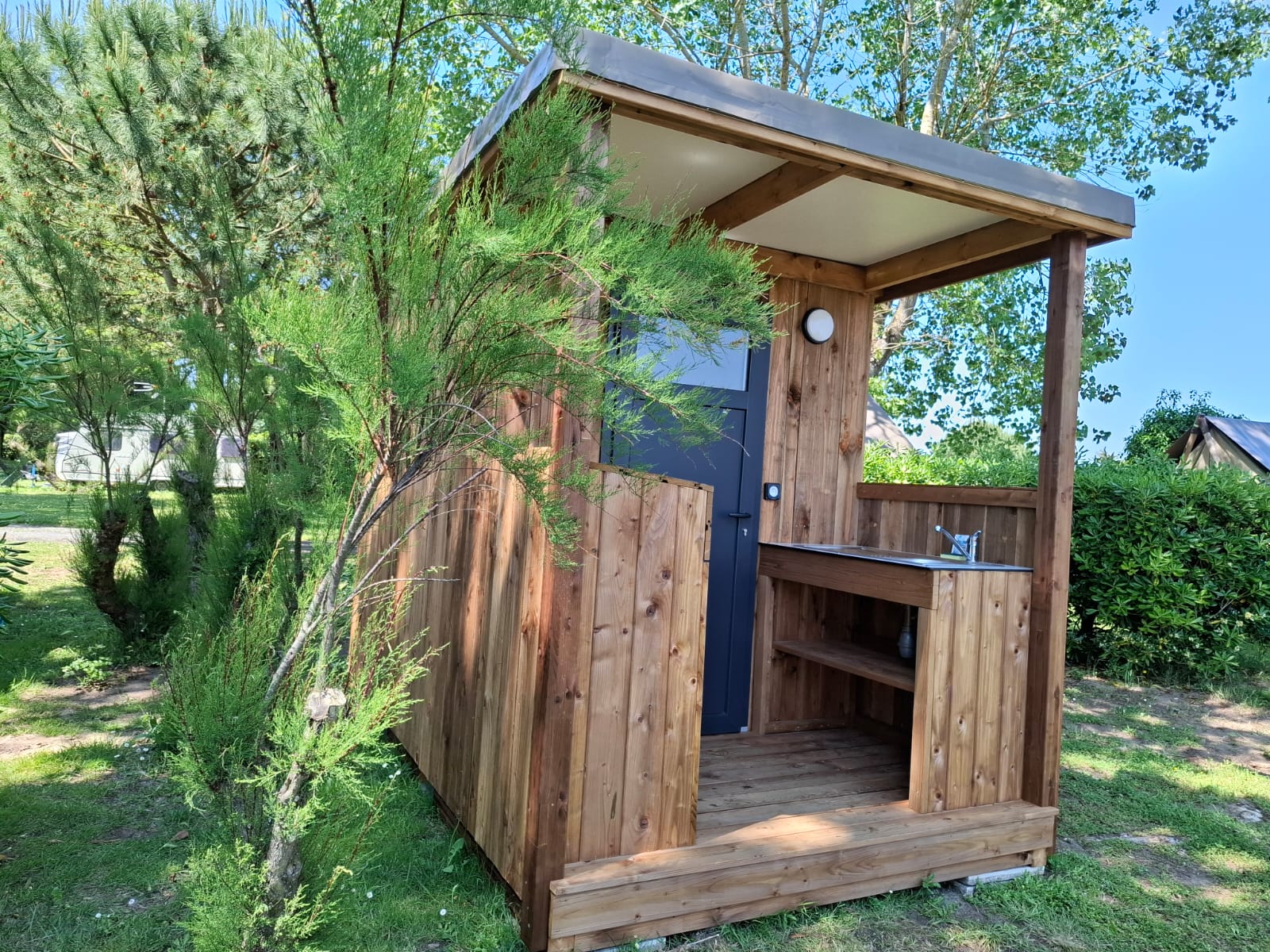 Stellplatz Luxury package with private sanitary + outdoor kitchen