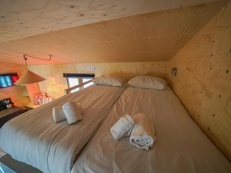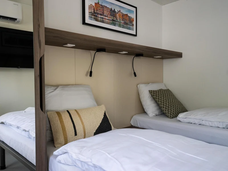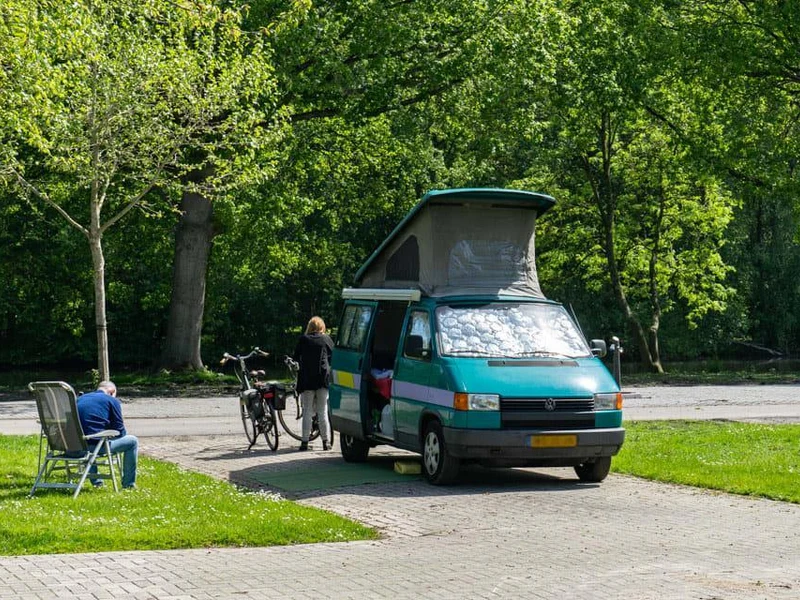 Bei so vielen Möglichkeiten in der Umgebung ist der Campingplatz ein relativ ruhiger Ort ohne Restaurant, Unterhaltung oder Live-Musik. Auf dem Campingplatz können Sie die wichtigsten Waren des täglichen Bedarfs im Laden kaufen. Hier können Sie morgens Ihre frisch bestellten Brötchen bekommen. Mit einem Leihfahrrad können Sie sich leicht durch den Wald bewegen oder ins Zentrum von Amsterdam radeln. Mieten Sie einen E-Chopper mit dicken Reifen und folgen Sie einer Route, die Sie über eine App herunterladen können. Auf dem Gelände befindet sich ein Spielplatz, auf dem die Kinder ungehemmt klettern und spielen können.