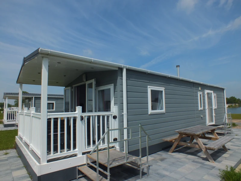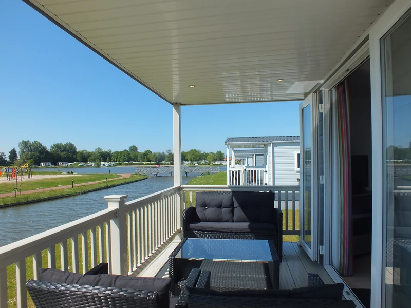 Stacaravan met terras aan het water