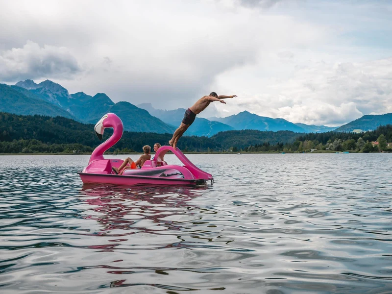 Mit direktem Zugang zum Pressegger See können Sie den malerischen See, der als einer der wärmsten Seen der Alpen bekannt ist, geniessen. Das klare und ruhige Wasser lädt zum Schwimmen ein und das flache Ufer macht ihn zu einem sicheren Ort für Kinder zum Spielen und Schwimmen. Der Campingplatz verfügt auch über eine schöne Poollandschaft, die sowohl zum Entspannen als auch zum Spielen einlädt. Hier finden Sie beheizte Becken, die auch bei kühlerem Wetter für eine angenehme Temperatur sorgen.