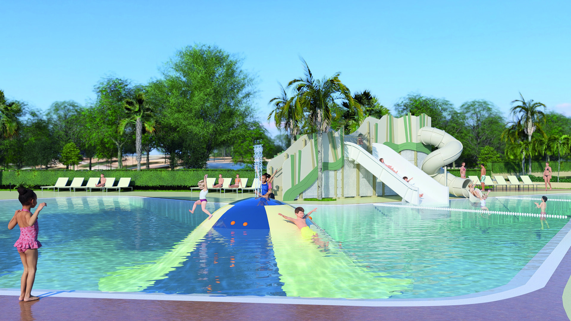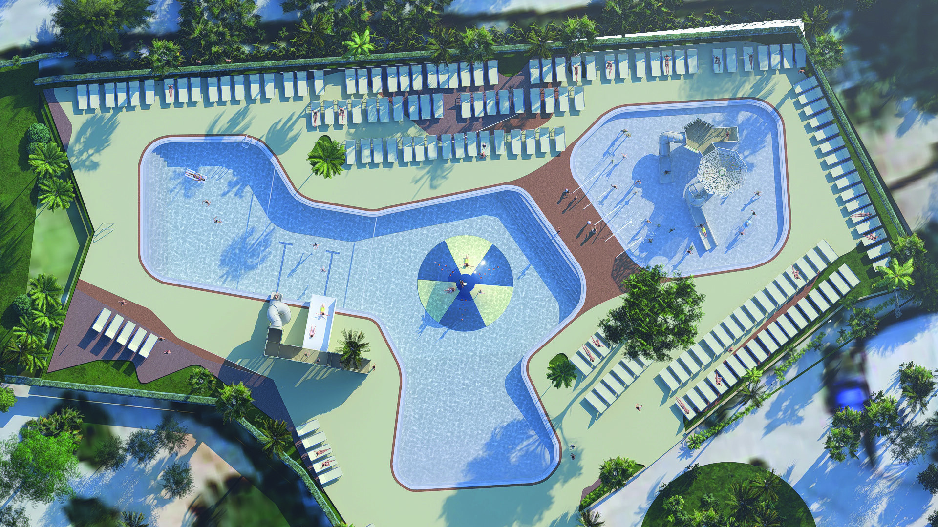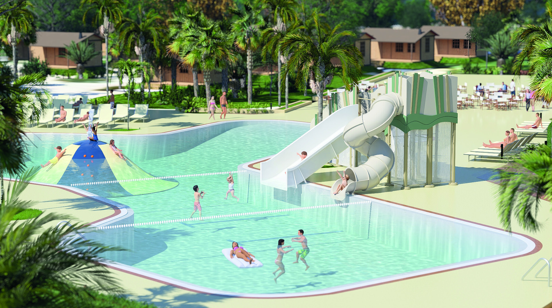 - Mehrere Schwimmbecken und Wasserrutschen