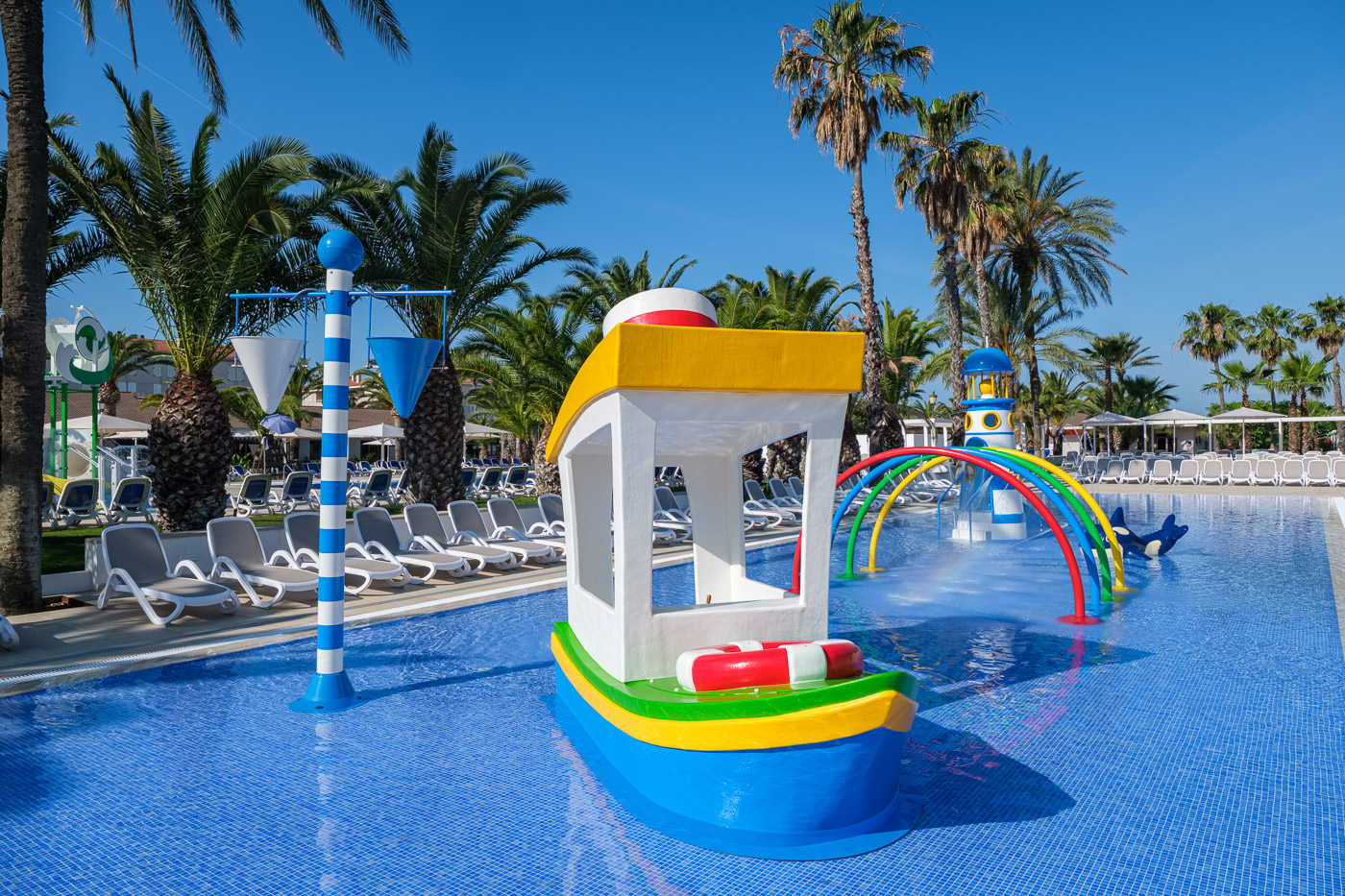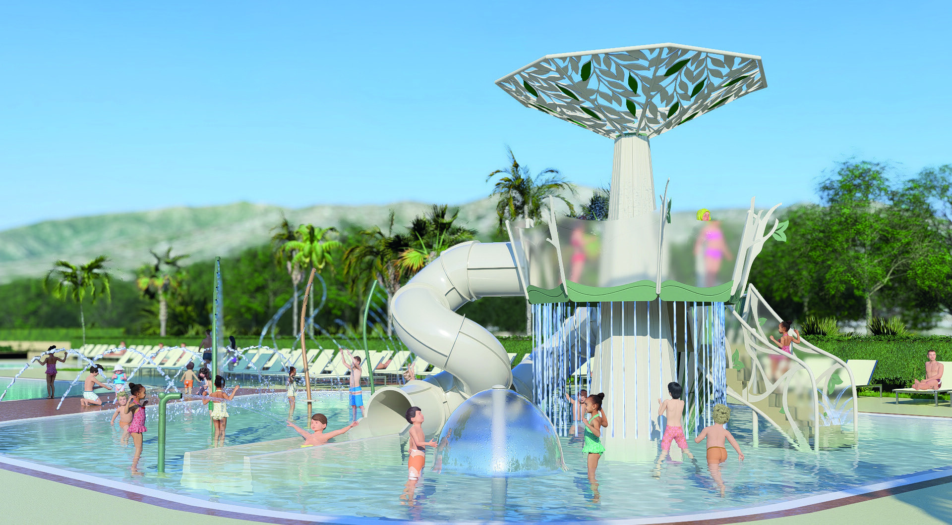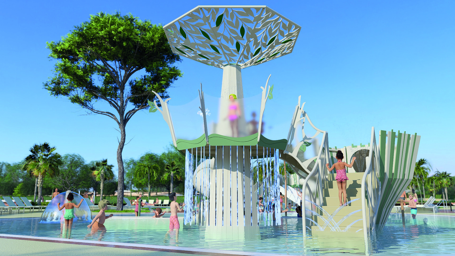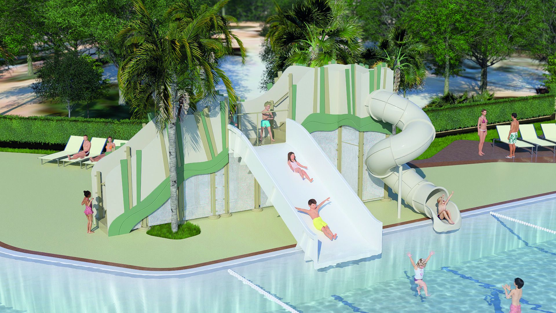 - Mehrere Schwimmbecken und Wasserrutschen