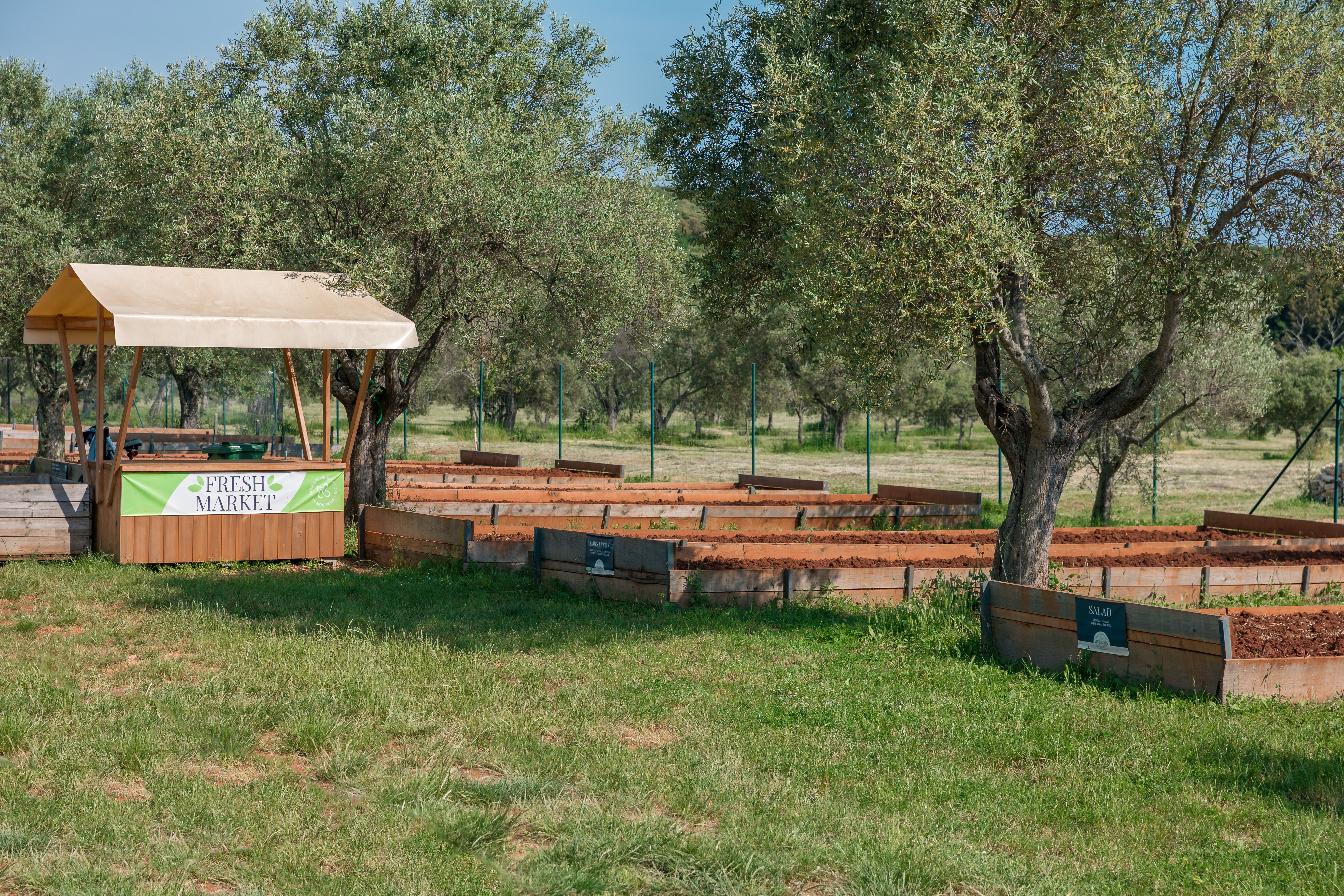 - Schatten spendende Oliven- & Eukalyptusbäume