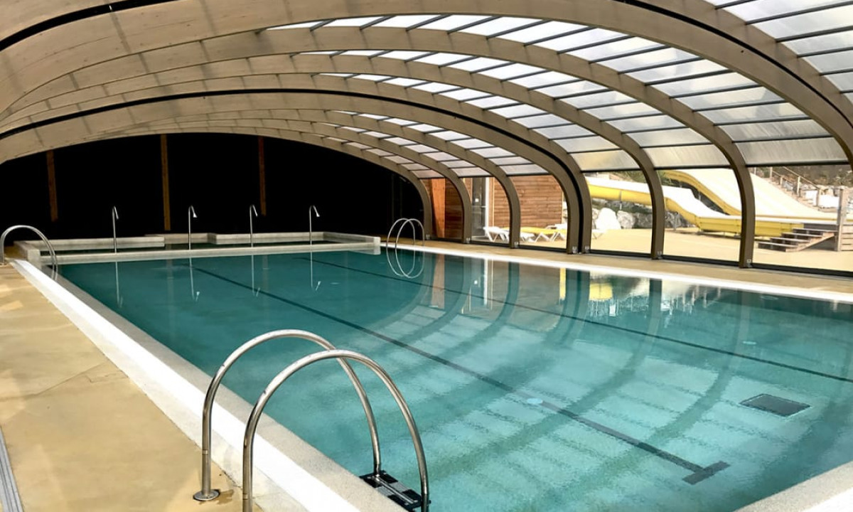 - Überdachtes und beheiztes Schwimmbad mit Rutsche und separatem Kinderbecken