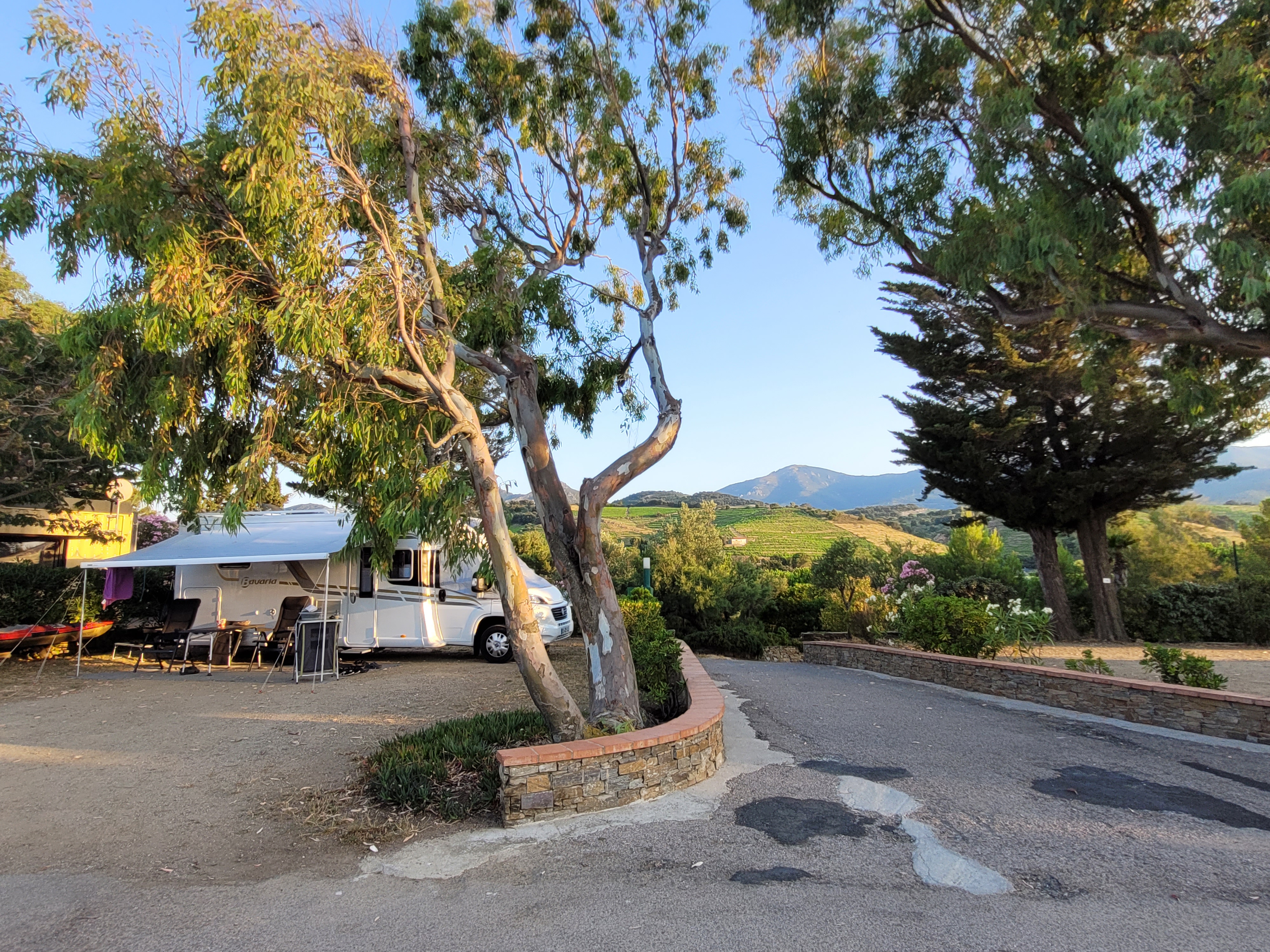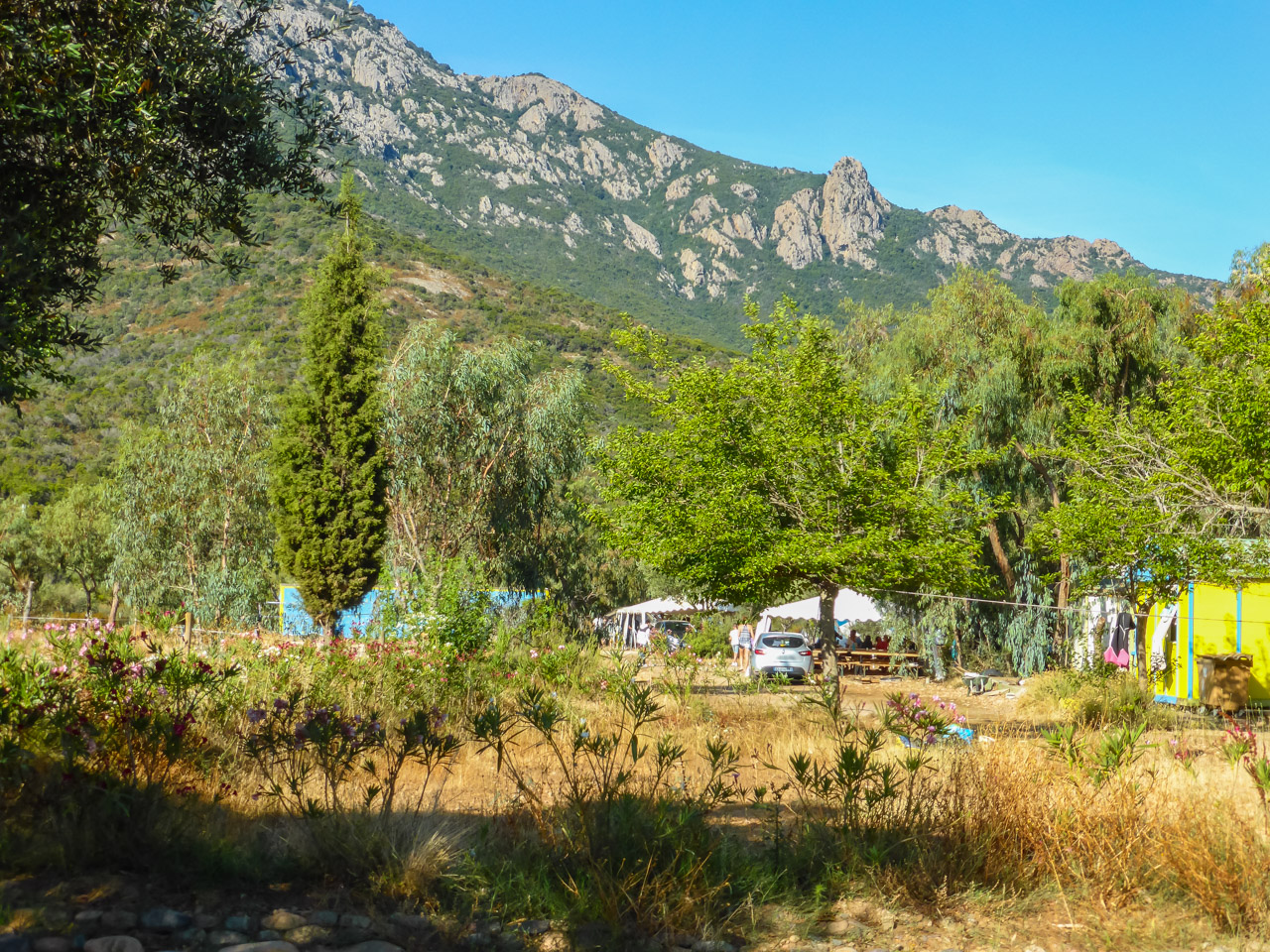 - Idyllischer Campingplatz umgeben von Olivenbäumen und Bergen