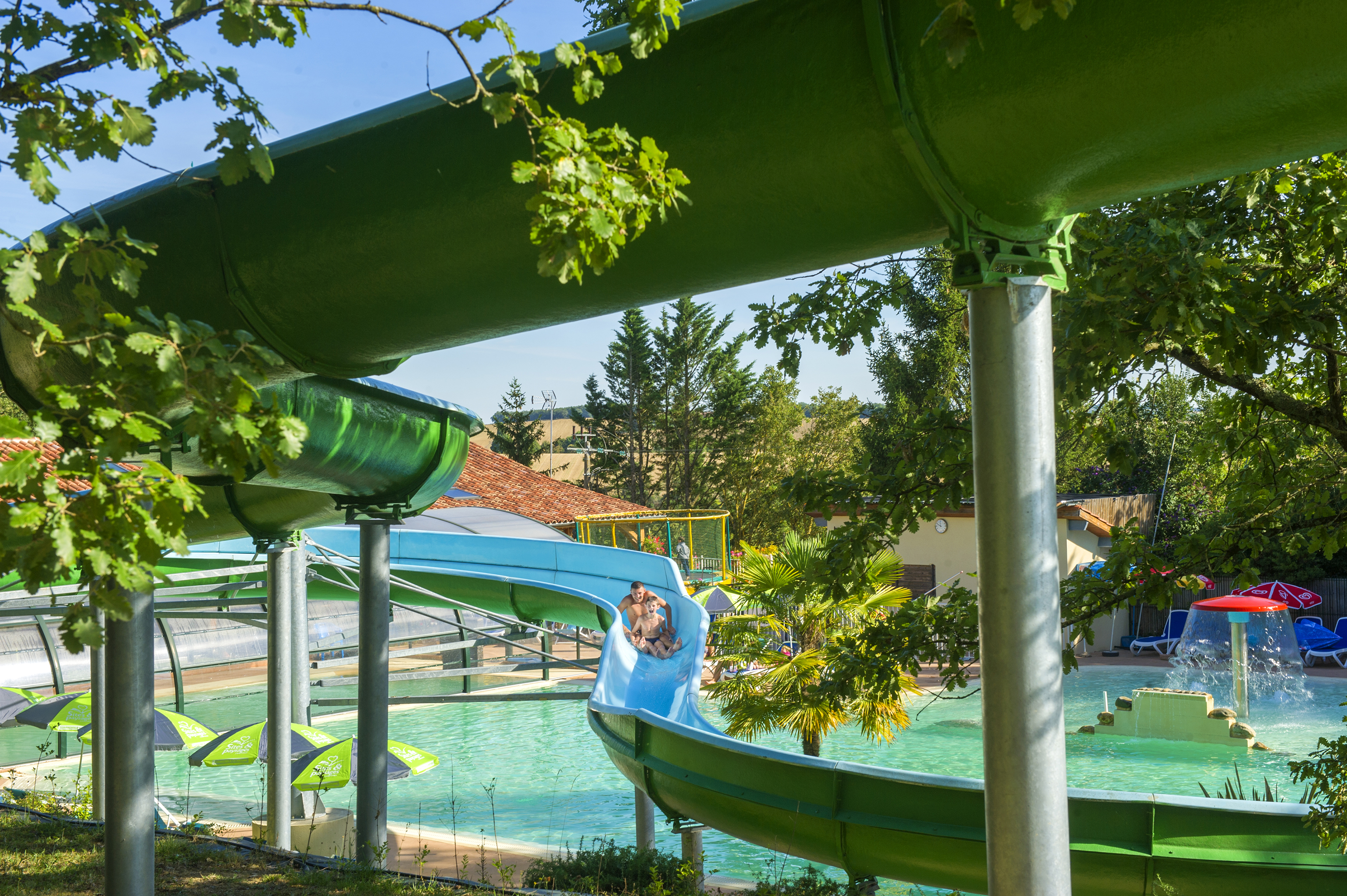 - Weitläufiger Poolkomplex mit hoher Rutsche